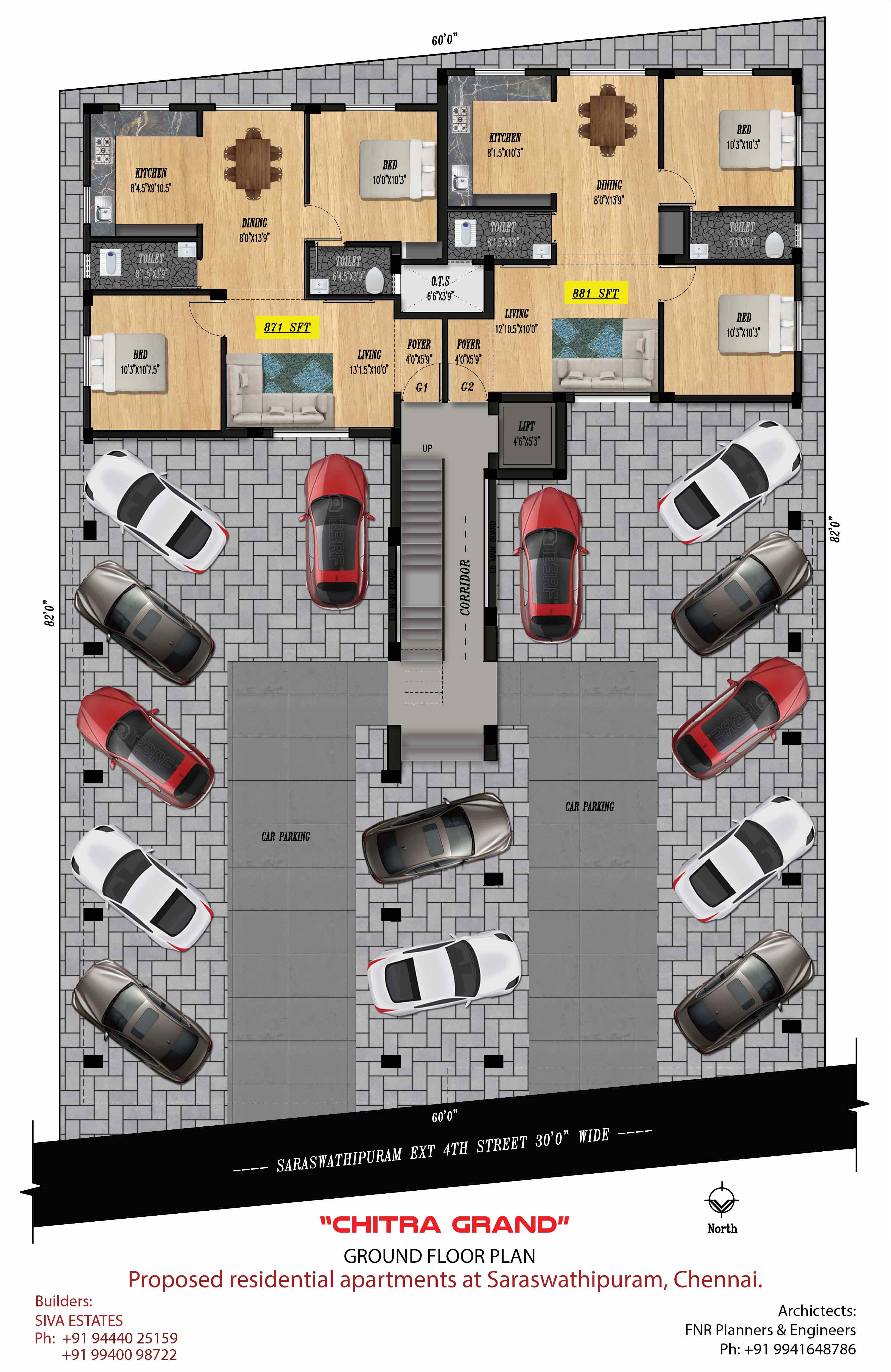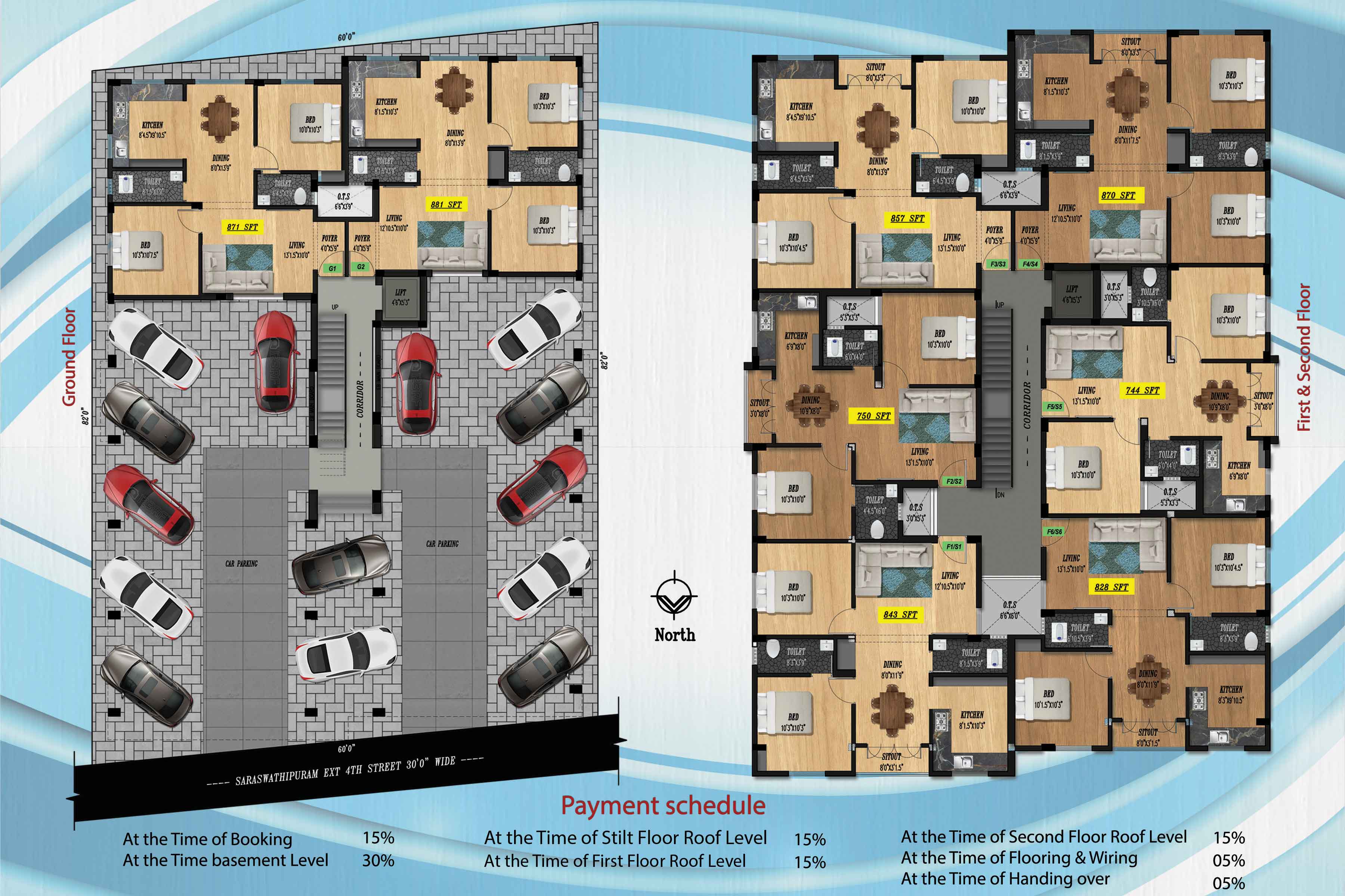 This is an ongoing project. It consists of total 14 units of 2BHK flats. It has covered car parking, UPVC windows and ventilators.
